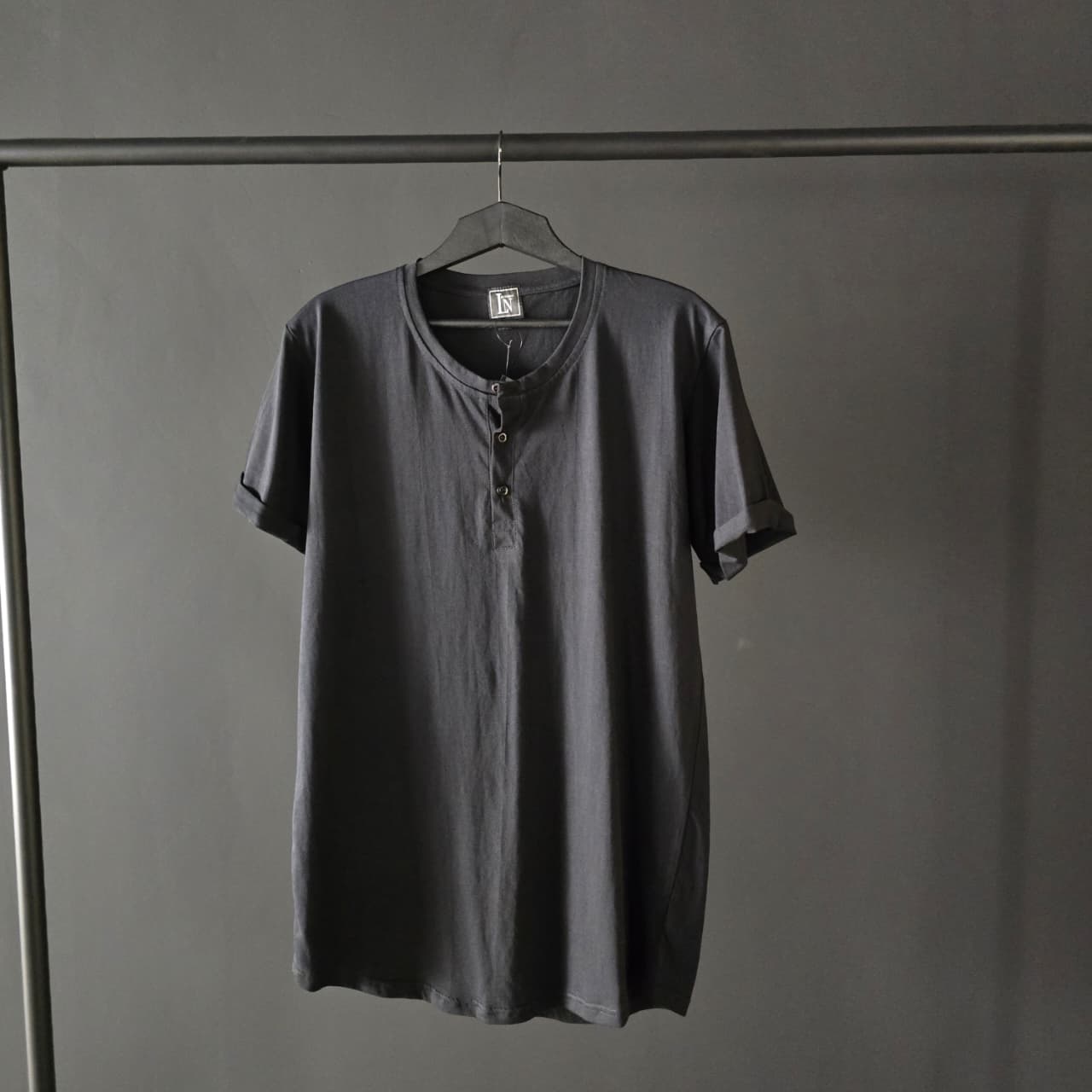 Stand out in style with our curved mid buttons tee! Featuring a unique curved V-neckline and a relaxed fit, this tee offers a bold twist on classic casual wear, perfect for expressing your individuality.